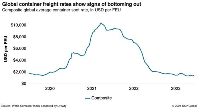 The market did see some incredible spikes in 2022 followed by big drops in 2023, especially in ocean volume.