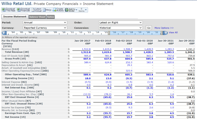 The company’s 5-year financial history, available in S&P Capital IQ Financials, reveals that its losses are driven primarily by a reduction in Total Revenue. In its annual report, management points to reduced footfall in stores due to national lockdowns, particularly during the last quarter, a peak trading period. The company was also affected by global supply chain disruptions and staff shortages at its distribution centres, which left shelves empty.[4] While the company also posted negative net income in 2018, this was caused by a one-off loss on currency forward contracts and costs related to store management restructure.[5] Consequently, the company was able to recover and return to profitability in 2019. It appears the current economic climate did not allow it to do the same this time around.
