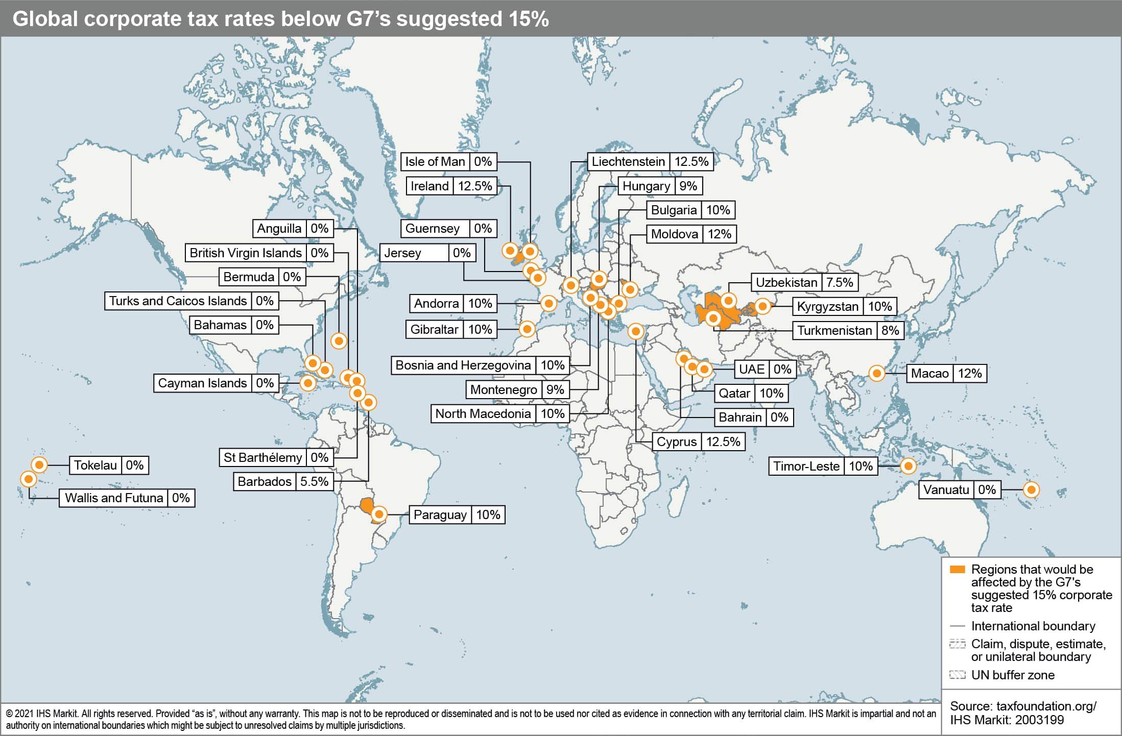 The most likely outcome from the G7 Leaders' Summit is an agreed communique that restates the finance ministers' commitments on general principles but does not identify specific actions for countries - notably those currently likely to oppose the global standard. Should such a communique explicitly or implicitly link the G7 proposal to Pillar Two of the ongoing OECD/G20 Inclusive Framework that includes a global minimum corporate tax rate of 12.5%, this should create further momentum for the OECD proposal. Meanwhile, G7 members are likely to announce an agreement on broad principles, rolling the process onto the G20 finance ministers meeting in July, and thereafter to the October G20 Summit in Rome, where digital taxation is likely to be high on the agenda. That latter meeting is likely to be crucial to recruiting countries from outside of the "global north" and smaller non-G7 economies to support global arrangements for the taxation of multinationals. The support of some of those countries will be critical to any possibility of positively influencing Russia and China, which have given their own corporate tax rates at 20% and 25%, respectively, and which will probably view the standard-setting initiative in geopolitical terms as an attempt to push back against their influence globally.