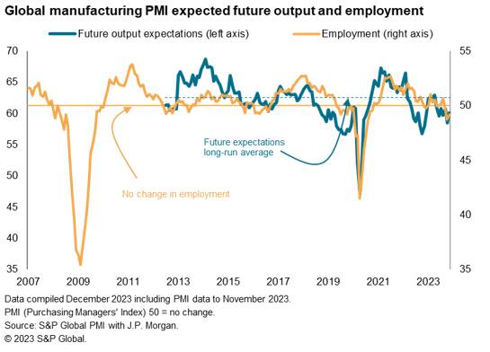 The sustained downturn in demand signalled by the survey contributed to a further gloomy outlook for the year ahead among manufacturers. Although business expectations lifted from October's recent low, the level remained well below the survey's long-run average.