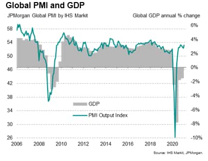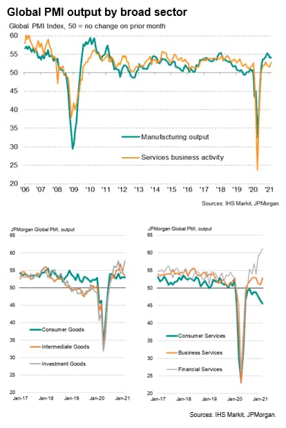 At 53.2, up from 52.3 in January, the JPMorgan Global PMI™ (compiled by IHS Markit) indicated rising output for the eighth straight month as demand continued to revive from the initial impact of COVID-19 lockdowns.