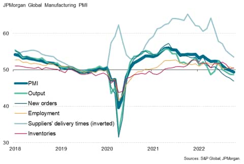 The survey's sub-indices, further examined here, pointed to a sustained reduction in production amid deteriorating demand conditions and a worsening outlook. While the easing of supply chain delays and price pressures were welcoming news, this again stemmed from the cooling of global demand.