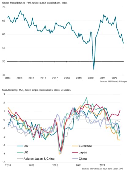 Amid the continued deterioration of demand and price pressures global manufacturers' business confidence weakened again at the start of the fourth quarter. The gauge of business optimism is now running at the lowest level since May 2020, and is particularly weak across the eurozone, UK and US amid growing risks of recession in these regions.