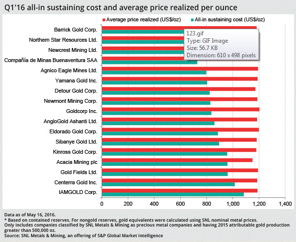 Despite the gradual recovery of global gold prices so far this year, during the first quarter of 2016 most gold producers continued their efforts to reduce all-in sustaining costs (AISC). The major producers of gold gained an added advantage due to strengthening of the U.S. dollar against local currencies and lower global fuel prices.