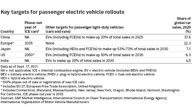 We forecast global PEV sales to increase to 13.1 million units in 2025, with China regaining the top position as the world's biggest PEV market with 5.2 million sales, compared with 5.0 million for the EU. PEV sales in the U.S. are expected to benefit from enhanced policy support under the current administration and rise to 1.3 million in 2025 from an estimated 720,000 units in 2021. PEV sales will continue benefitting from favorable consumer-side incentives including subsidies and public funding for charging infrastructure as well as producer-side "sticks" compelling lower emissions and higher fuel economy. The culmination of policy momentum has intensified the race to win market share by offering cost competitive mass-market models and increasing PEV investments at the expense of reducing or phasing out internal combustion vehicles, thus accelerating global automakers' transition to PEVs.