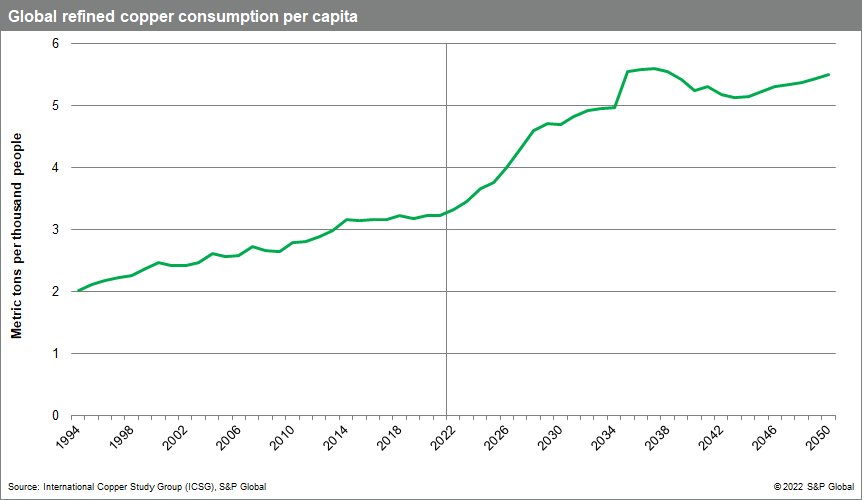 Regardless of source of demand the top five refined copper-consuming countries today are dominated by industrialized countries. By 2050, however, only China and the United States will remain in the top five, while India, Vietnam, and Mexico will supplant Germany, Japan, and South Korea in the global rankings.