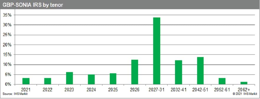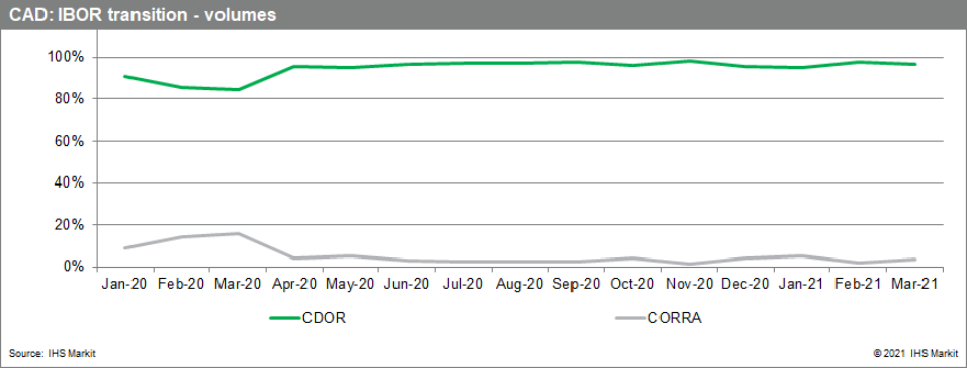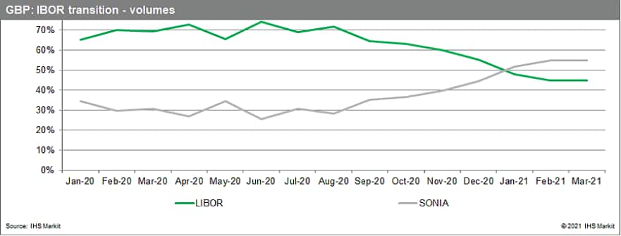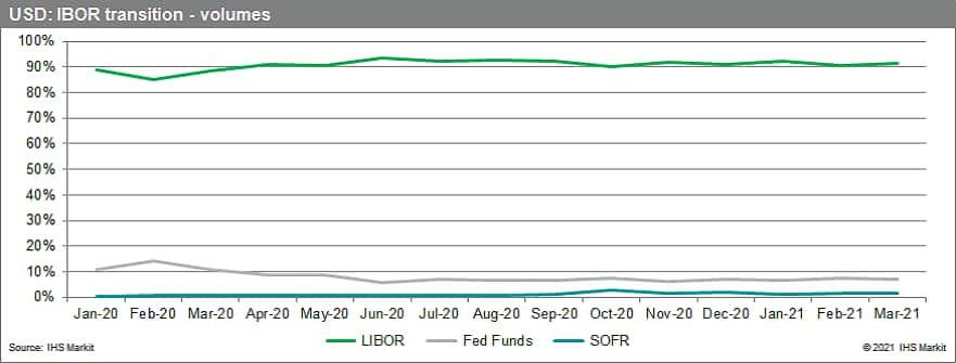 There had been little change until the start of 2021. CHF-LIBOR will cease publication on December 31, 2021 but LIBOR remains approximately 90% of all CHF swaps volumes.