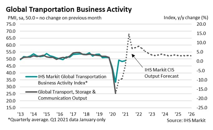 The impact of such assessment is not limited to the manufacturing sector, however. During the pandemic, the service sector has been hit hard and this has been seen time and time again in national and PMI data by sector. The impact on consumer-facing businesses has been marked, but also industries which rely upon the movement of goods and people. The transportation sector saw a significant decline during the depths of the initial lockdown period in the spring of 2020 and began to gradually move towards recovery in the latter stages of the year. That said, the Global Transportation Business Activity Index only went above the 50.0 no change mark twice in 2020, once in January and a second time in November, with the recovery plateauing in January 2021.