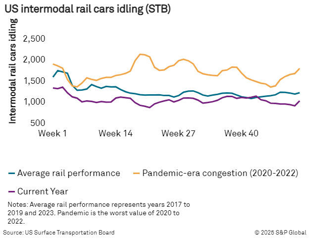 Chassis availability was not a problem for domestic and international intermodal shipments, unlike during the pandemic. While the ports of Los Angeles and Long Beach saw volume spikes and two-year highs in rail dwell times this fall, no significant terminal congestion was reported in Chicago, Dallas, Kansas City or Memphis.