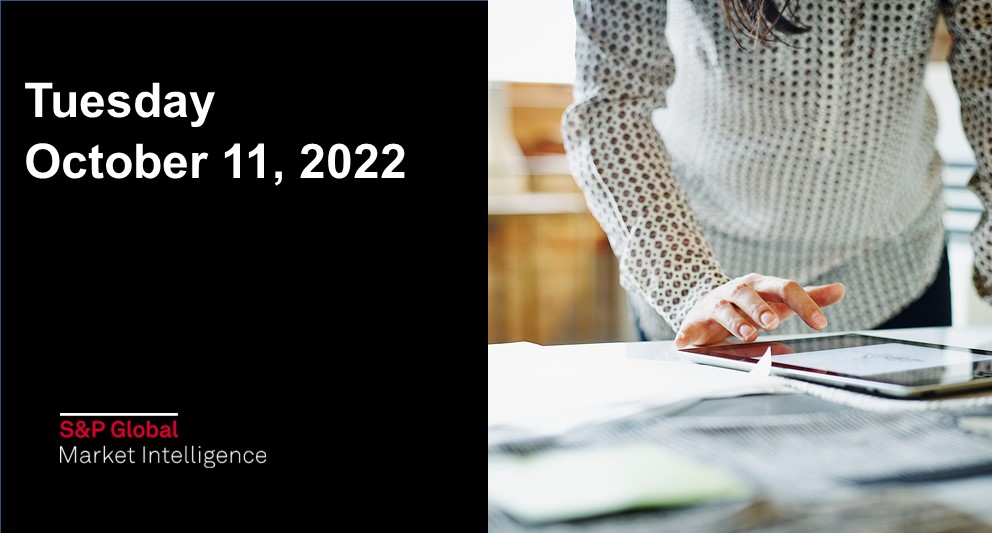 Today is Tuesday, October 11, 2022, and here’s your weekly selection of essential intelligence on financial markets and the global economy from S&P Global Market Intelligence. Subscribe to be notified of each new Insight Weekly