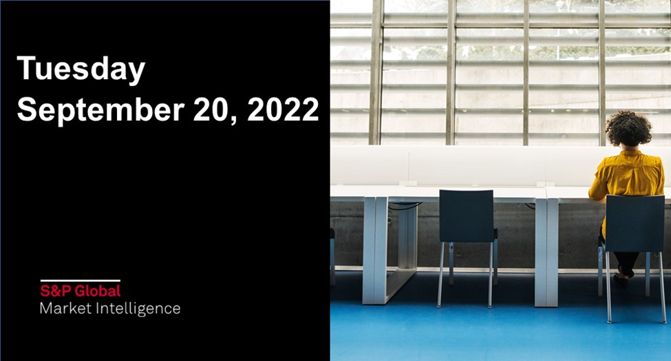 Today is Tuesday, September 20, 2022, and here’s your weekly selection of essential intelligence on financial markets and the global economy from S&P Global Market Intelligence. Subscribe to be notified of each new Insight Weekly.
