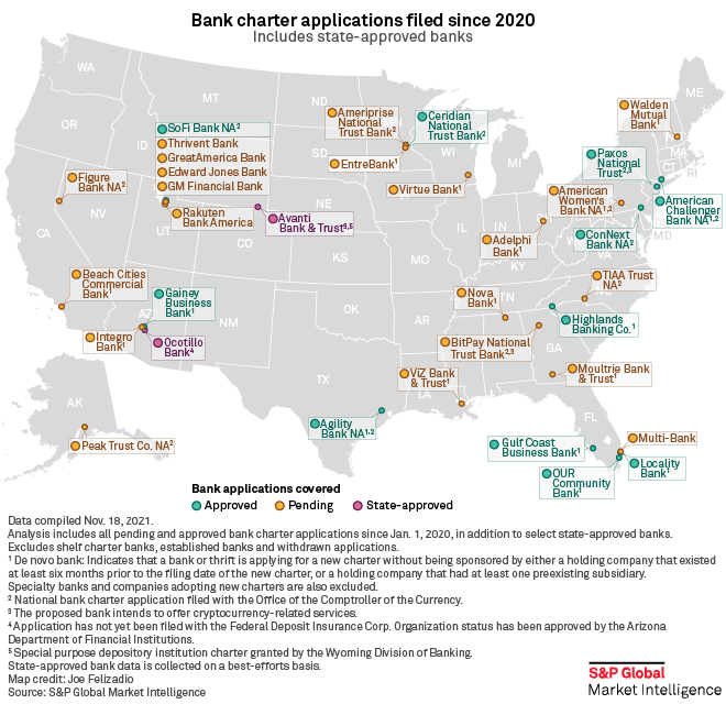 US new bank charter applications of 2021: De novo activity surpasses '20