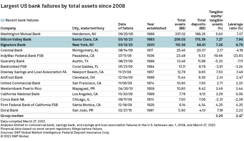 Largest US bank failures