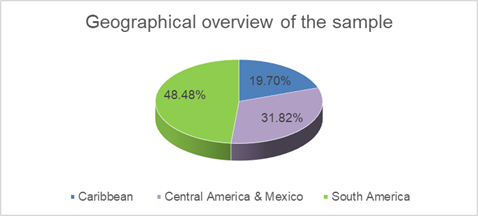 We have run an exercise that dives into the LGD considerations for The Caribbean and Latin American regions. As part of this exercise we have used the data from Capital IQ database as of March 2021. Using this data, we have created a portfolio of 66 entities in the region for which we have derived entity specific LGD. The results of this exercise were derived using the S&P Global Market Intelligence Loss-Given Default (LGD) model. Using our proprietary formula for economic expectations as utilized in our Corporate LGD model, we have generated weighted LGD that could be used for IFRS 9 purpose. In our generated portfolio, South America represented the biggest part of the sample with slightly over 48% as seen on the pie chart below.