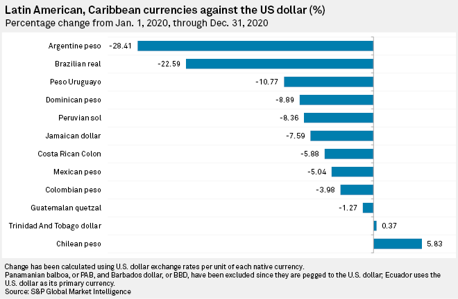 Driven in part by soaring copper prices, Chile's most important export, the Chilean peso was by far the best-performing currency in 2020, appreciating by 5.83% against the U.S. dollar.