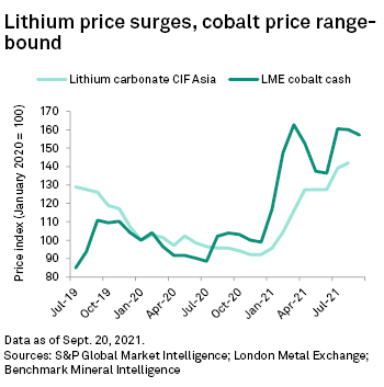 Cobalt prices remain range-bound between $22.72 per pound and $24.04/lb ($50,093/t-$53,000/t) in the month to Sept. 20 from the interplay between supply delays and weak demand growth.
