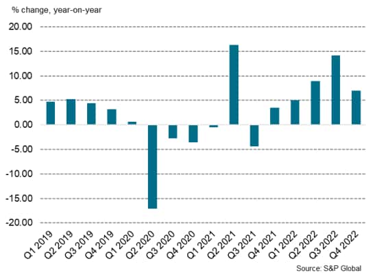 The Malaysian economy grew at a pace of 7.0% y/y in the fourth quarter of 2022, which brought annual GDP growth for calendar 2022 to 8.7% y/y. However, GDP contracted by 2.6% on a quarter-on-quarter (q/q) basis.