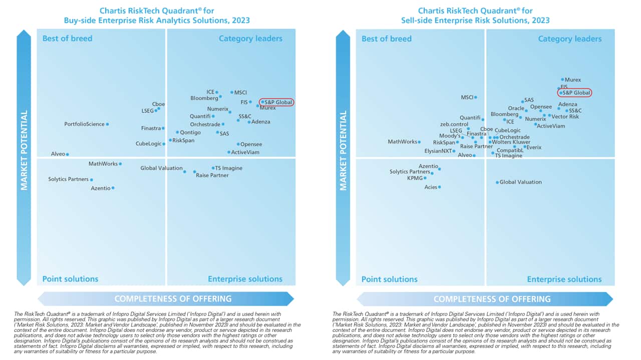 S&P Global Market Intelligence was delighted to be recognized as a category leader, with advanced and industry leading capabilities across key criteria for our Buy Side Risk solution as well as sell-side Traded Market Risk and FRTB solutions.