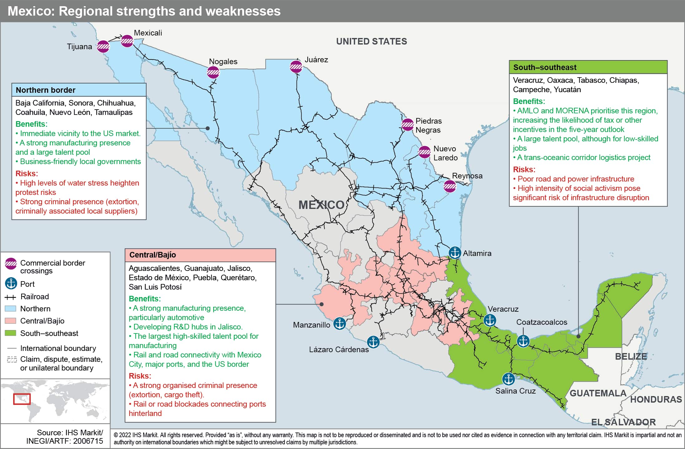 Balancing Mexico's strengths and its inherent operational risks, the incentives for nearshoring to Mexico are likely to remain high for companies serving the US market, reflecting US President Joe Biden's supply chain resilience strategy, which aims at securing reliable suppliers in four strategic sectors: 1) semiconductor manufacturing and advanced packaging; 2) high-capacity batteries; 3) critical minerals and rare earth elements; and 4) pharmaceuticals and active pharmaceutical ingredients (API).