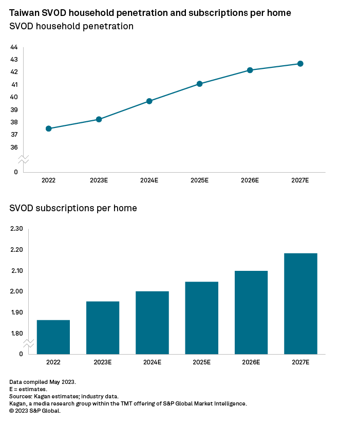According to Chien Ta-Wei, chairman of the Taiwan OTT Association and founder and president of LiTV, there are over 30 streaming services in Taiwan and the hybrid freemium model is the most widely adopted. Taiwan is one of the most affordable SVOD markets in the Asia-Pacific with average revenue per subscription (ARPS) estimated at $5.66 per month in 2022. Our model indicates monthly SVOD ARPS could rise at a compound annual growth rate of 2.9% to $6.55 by 2027 as competition constrains substantial price hikes. Daphne Yang, CEO of Catchplay Inc., commented that it is not a comfortable position as streamers compete through content and pricing strategies.