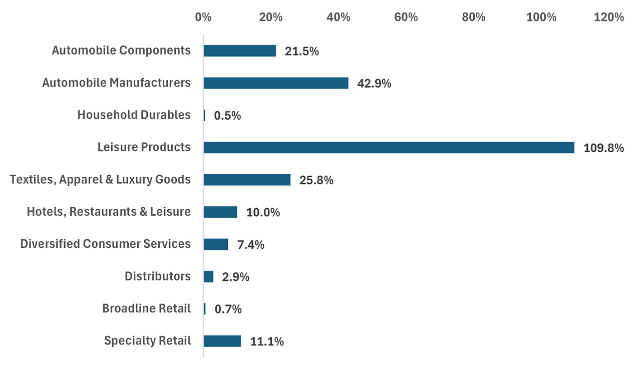 Consumer discretionary companies have shown notable resilience in the post-pandemic era. Many have rebounded from financial strains of the pandemic as consumer demand has returned to pre-COVID levels. However, looming U.S. tariffs reintroduce sector-wide risks, though their impact may vary significantly across industries. For example, U.S. tariff on foreign auto imports is starting to drive up consumer prices, dampen demand, and spur increased capital expenditures as manufacturers relocate production - a shift likely to strain supply chains and squeeze the profitability of the automakers and their suppliers. In addition, a series of country- or region-specific reciprocal tariffs went into effect on April 9, many at much higher rates than the baseline 10% tariff rate as of April 3.[1] The abrupt policy shift is introducing dramatic uncertainty to the financial market and impacting all segments that rely on stable global supply chains.