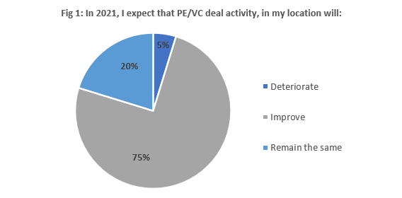 APAC PE/VC firms are overwhelmingly optimistic going into 2021, with the majority of respondents expecting to see fundraising conditions improve and their focus shift toward making new investments. While the spectre of the COVID-19 pandemic still looms large, as is somewhat indicated by the top three sectors of focus – IT, Consumer and Healthcare, respectively – respondents are also preparing for other risks, including the speed of technological changes and changing consumer behaviour. For all but 15% of respondents, 2021 will also see a widespread commitment to improving, or at least addressing, ESG-related factors.