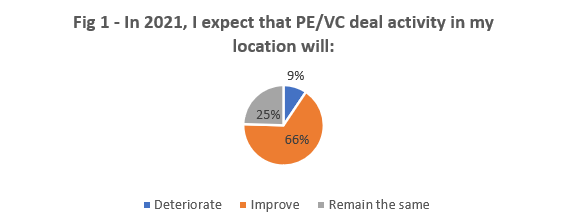 PE/VC firms in LatAm have an optimistic outlook going into 2021, with nearly two-thirds expecting investment activity to improve and 40% shifting their focus to new investments. COVID-19 remains the biggest threat, but survey respondents also identified political upheaval as a significant risk. In line with other regions, Healthcare and IT are the top two sectors of focus. Although 19% reported that ESG factors are not a consideration currently, ESG integration continues to accelerate, with more than double that number (42%) planning to improve ESG-related factors in their current portfolio.