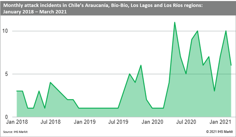 President Sebastián Piñera lacks a comprehensive security strategy in the area after withdrawing a specialised task force following the killing by the police of a Mapuche community member in November 2018, amid accusations of excessive use of force. The government's strategy for the rest of 2021 will probably center around an increased deployment of security forces, but this is likely to simply displace hotspots temporarily rather than address the underlying drivers of violence. The government's security agenda, which includes changes to the anti-terrorism law such as toughening penalties and allowing undercover agents in counter-terrorism operations, has been delayed in Congress due to the COVID-19 pandemic. Even if some of the bills are approved, it would take time for them to yield results. Furthermore, any significant progress with these legal amendments would probably be marked by immediate retaliatory attacks. The lack of consensus among the political parties on the most effective approach to deal with the issue, with some parties arguing it is a political issue and others that it is purely a security matter, will continue to hinder any progress towards reducing violence. The new Constitution is likely to include the official recognition of indigenous peoples. While this would be well received by many mainstream Mapuche communities, it is possible that certain extremist groups would see this as vindication of their armed struggle and thus intensify their demands and associated armed campaigns for land restitution.