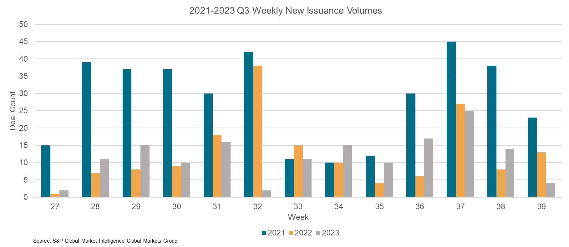 - Continuing the trend seen Q1 and Q2, volumes were driven by Follow-On offerings as 110 deals priced, down 5% from the 116 deals seen in Q2 2022