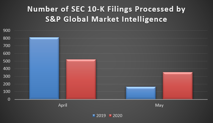 The COVID-19 shockwaves emanating through the global supply chain continue to reverberate. The information that decision makers have traditionally relied have also been disrupted but is slowly showing signs of normalizing. S&P Global Market Intelligence processes 64,000 financial documents each day, placing it in a central position in the information supply chain with a unique view into the specific areas and magnitude of information disruption.