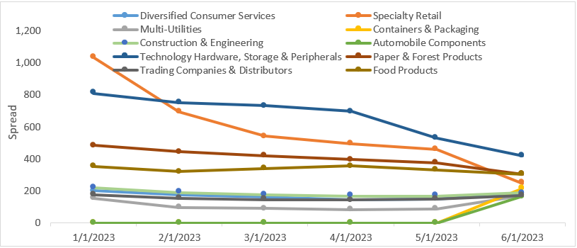 Figure 1: Top Ten Industries with Largest Spreads by End of Q2 2023