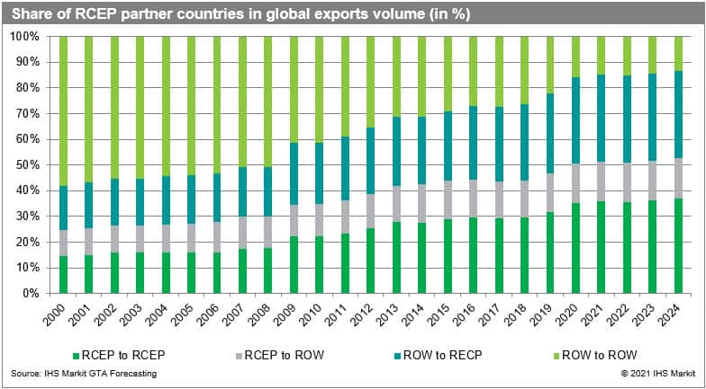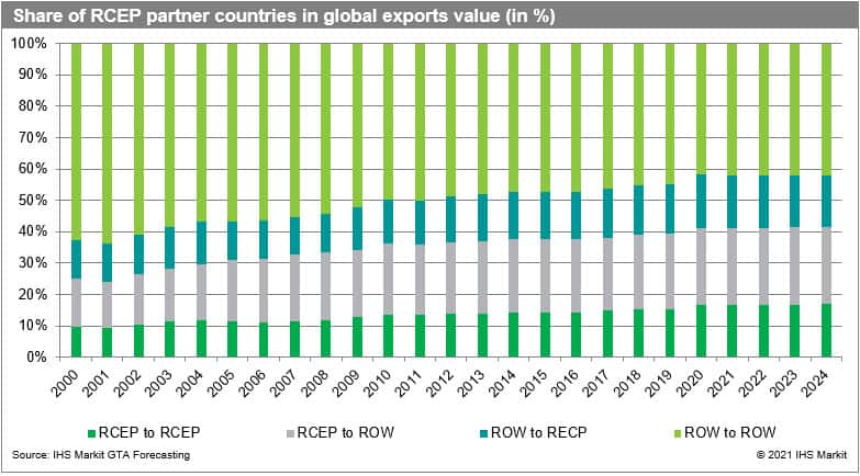 Due to RCEP, the trade within the region is likely to grow faster than trade with other parts of the world - thus the significance of the region's value chain for RCEP countries will increase but also the significance of RCEP globally will grow.