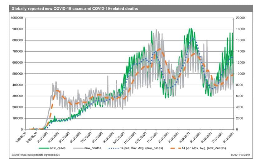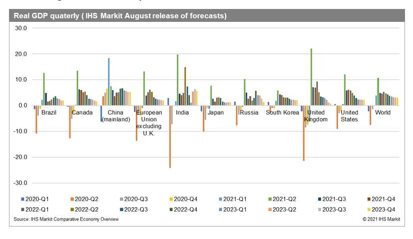- The most recent real GDP growth forecasts from IHS Markit were published on 18 August 2021 and are based on the baseline scenario of the impact of COVID-19 on the global economy and rising global concerns over inflation and the presence of increasing once-again GVCs disruptions