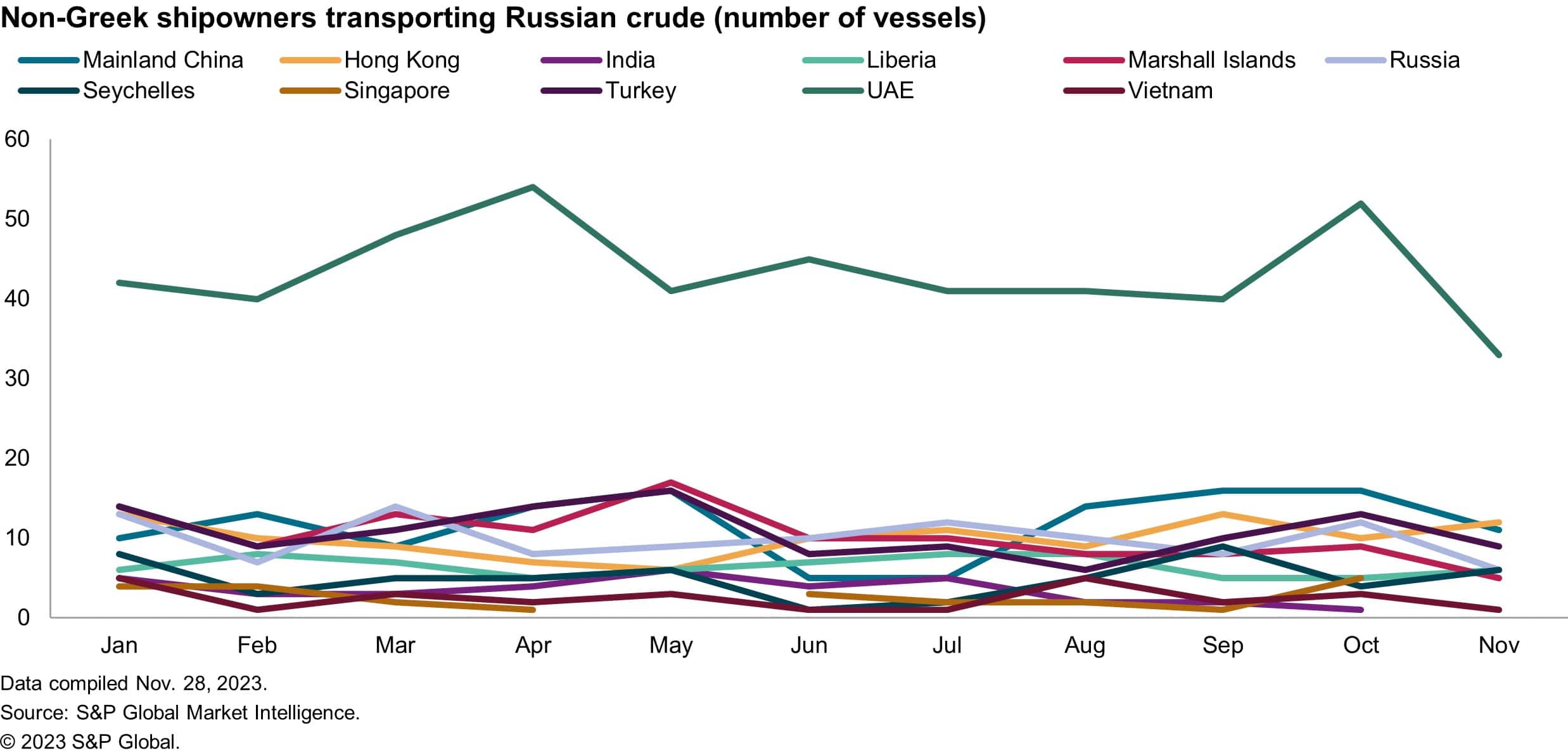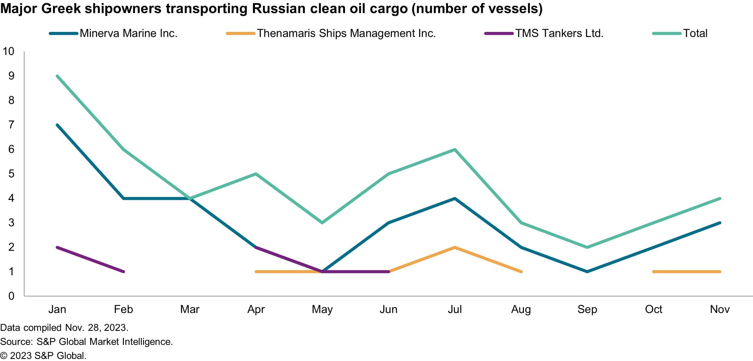 Overall, the wider picture supports the current viewpoint that Greek-based owners are shifting away from the transportation of Russian crude. October and November 2023 witnessed partial downward movement but not a complete shift. For vessel group owners involved in Russian crude shipments, there remains substantial Greek participation of at least 20% share of the overall commodity shipments.
