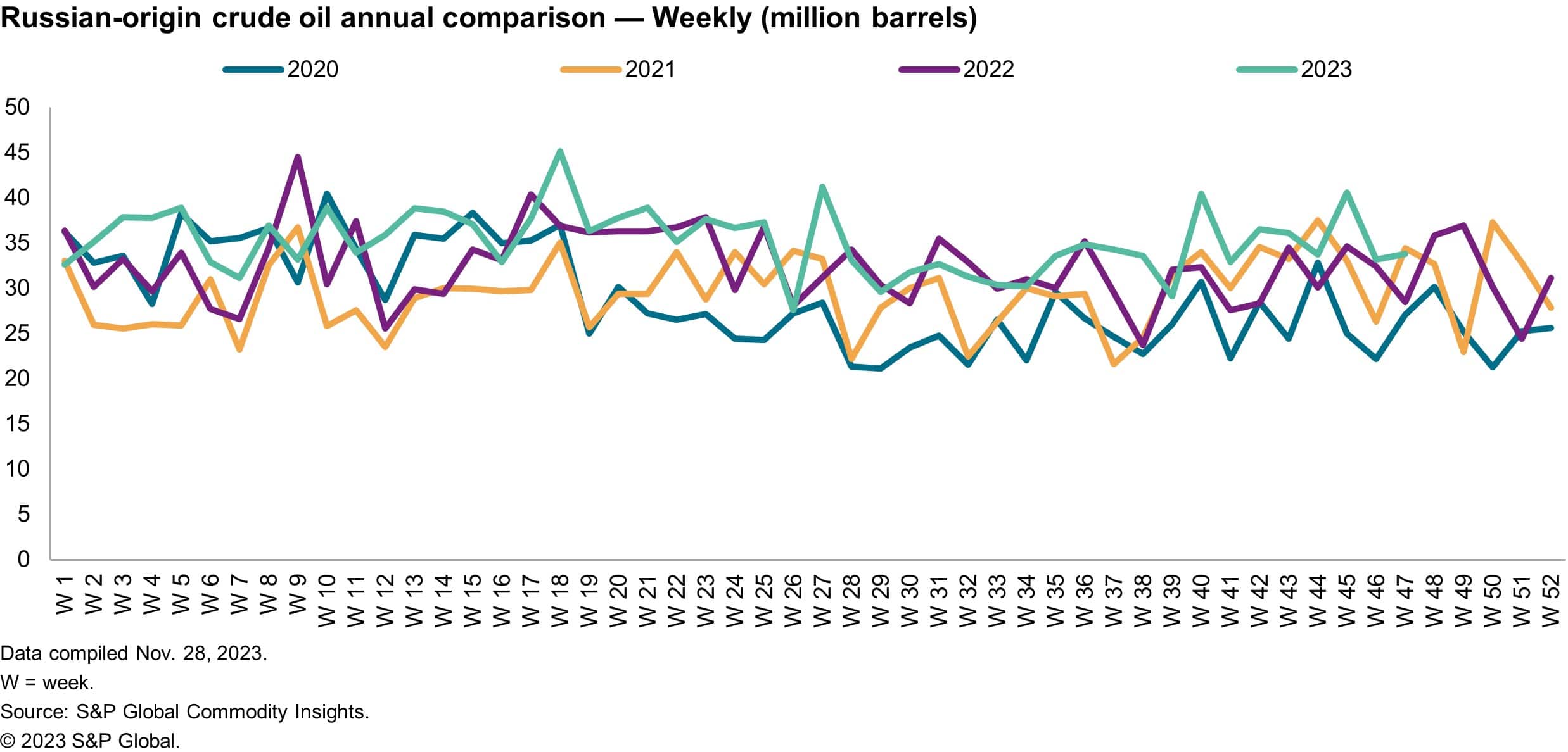 The current flow of Russian seaborne crude for 2023 remains high compared with previous years. In the most recent weeks, Russian exports have continued to increase despite several concerns, including poor weather in the Black Sea.