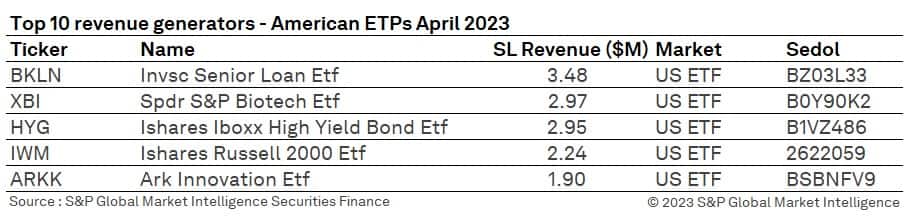 The top revenue generating ETFs all remained familiar names over the month. Revenues from HYG continued to decline and the Invesco Senior Loan ETF (BKLN) took the top spot generating over $3.4M during the month. This ETF aims to index the leverage loan market and remains a favourite amongst short sellers given the uncertainty regarding any future moves in interest rates. The SPDR S&P Biotech ETF (XBI) is a newcomer to the most borrowed list. Short interest across the Biotech sector has been increasing recently as uncertainty regarding profitability is becoming an issue for the sector. Increased interest rates often make it difficult for companies to raise funds and it also diminishes the value of future profits. The majority of biotech companies are expected to generate the bulk of their revenues in the future which puts them under the spotlight.
