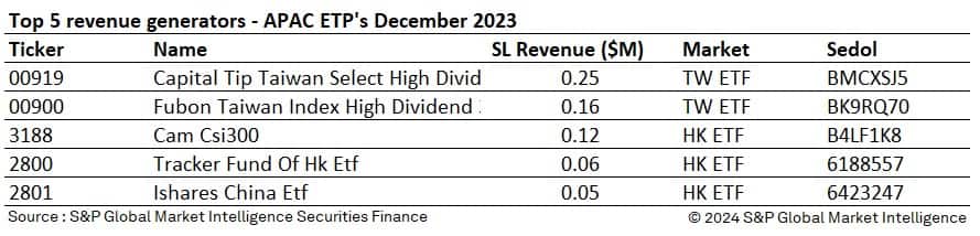 Asian equities remained a bright spot in the securities lending markets during the second half of the year, picking up some of the short fall in revenues left by a decline in specials activity in US equities. Japanese equities had a strong end to the year with December producing $50.8M of revenues (+21% YoY). $644.14M was generated during 2023 (+24% YoY). Average fees across Japanese equities stood at 50bps for the year (+17% YoY) and on loan balances were 6% higher YoY. Another strong market in the region was South Korea. Despite the imposition of a short selling ban during November, the country produced revenues of $21.1m during December and $393.6M during 2023 (+21% YoY). Specials activity has pushed revenues higher with Q2/3 experiencing some of the highest increases in YoY returns across any market (Aug +100% YoY, Sep +138% YoY and Oct +97% YoY). Utilization declined by 13.8% during December but over the year was 12% higher. The other main market in the region that makes a strong contribution to regional revenues, Hong Kong, produced $31.5M of revenues during December (-34.5% YoY) and $412.77M during 2023 (flat on 2022). The Hong Kong market produced some of the highest revenue generating stocks over the year and average fees for 2023 were 20% higher than during 2022 (150bps 2023 vs 126bps 2022) which supported annual revenues. A 16% YoY decline in balances and a 10% YoY decline in utilization affected the general performance of this market.