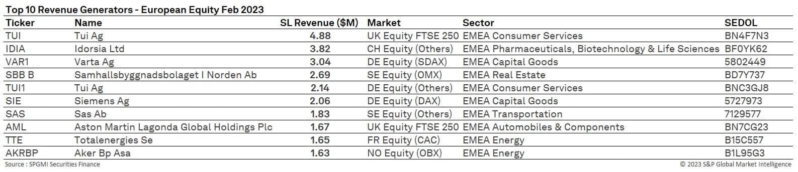 Tui AG was the highest revenue generating stock of the month. It currently has a short loan quantity of 67M shares which equates to circa 34% of all shares outstanding. Revenues increased significantly over the month ($2.6M January) as days to cover topped 100 days for the first time.