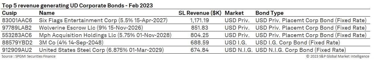 Revenues generated by corporate bonds increased 46% YoY to $93.1M. Despite decreasing when compared to January ($102M), revenues for Q1 2023, after two months, are only $10M less than Q1 2022, and are the equivalent of the first five months of revenues for both 2021 and 2020. Over the month average fees dipped 1bps to 46bps (+60% YoY) from the all-time high seen during January, offsetting a decline of 9% YoY in balances. Utilization increased over the month to 5.86%, which is also likely to be a near record level.