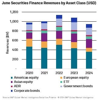 Activity within the securities lending markets remained robust during the month even though the revenue numbers may, at first glance, suggest a rather lackluster performance. Strong pockets of activity continued to appear throughout the market but the number of high value single special stocks that boosted market revenues during 2023 continued to fade. The market environment was not particularly conducive to strong securities lending activity during the first half of the year with unidirectional markets and low volatility, but heading into the second half of 2024, this appears to be changing. As interest policy starts to diverge across the globe and as increasing geopolitical risk starts to be consumed by equity investors, volatility is returning. It appears that equity markets maybe starting to wake up to the impact that upcoming political change may have on future economic growth and fiscal policy. As this realization increases heading into the second half of the year, it is possible that securities lending may be a strong beneficiary of this new dynamic.