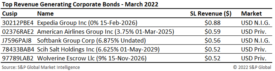 Expedia Group Inc 0% note due Feb 2026 was the top generating name for the month, with a record revenue of $0.88m, up 450% MoM. American Airlines Group Inc 3.75% note due March 2025 maintained its position as the second most generating corporate bond, with $0.59m returned this month.