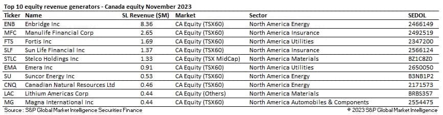 In the Canadian securities lending markets, despite revenues declining by 6% YoY, November revenues were the highest seen across the region since August. The increase in revenues was a direct result of an increase in average fees. Average fees increased by 6% YoY and by an impressive 18% MoM. Loan balances increased by only 0.2% MoM despite a near 7-10% increase in the two main indices across the region. Balances declined 11% when compared YoY and marked their lowest November average since 2020. Utilization across Canada declined MoM and YoY, dipping back below 7% for the first time since August. Average utilization in the country YTD remains higher than during 2022 however at 7.15% vs 6.34% during 2022.