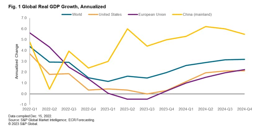 The long-awaited downturn in global trade will take place in 2023. Supply chain realignments that have been years in the making will begin to take effect. New research uses S&P Global Market Intelligence's proprietary trade forecasts and bill-of-lading data to unearth the key trends to watch in 2023.