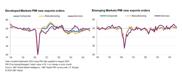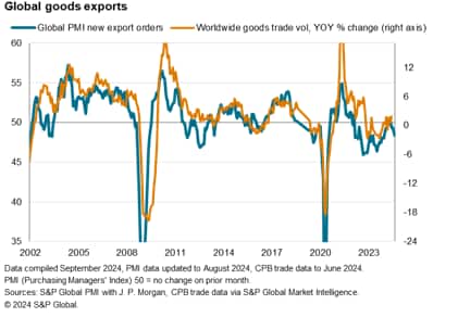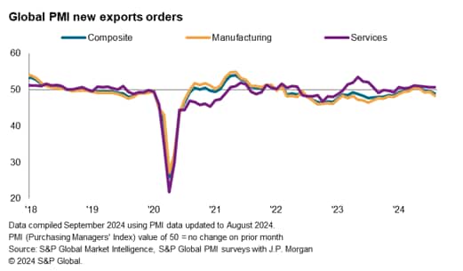 The worldwide Purchasing Managers' Index (PMI) surveys compiled by S&P Global Market Intelligence indicated that global trade further deteriorated midway through the third quarter of 2024.
