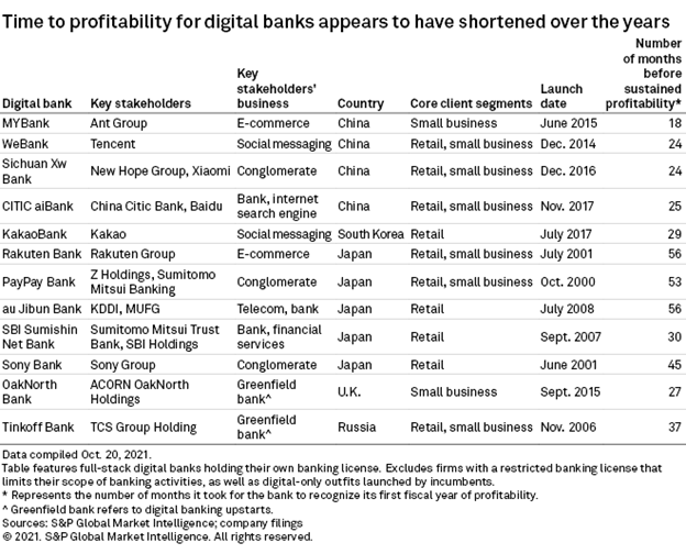 For comparison purposes, the analysis also features the revenue structure of select top-funded digital banks that have yet to realize first full-year profitability.