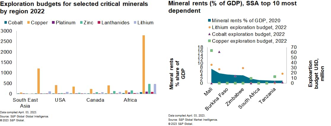 Mali had the largest copper and lithium exploration budgets within the region in 2022, previously evidenced by sizeable high foreign direct investment inflows during 2021-22. However, in 2023, exploration budgets are focusing outlays on lower-risk and low-cost exploration at mine sites and on more-advanced projects, so the region faces near-term challenges in continuing to attract investment for greenfield projects.