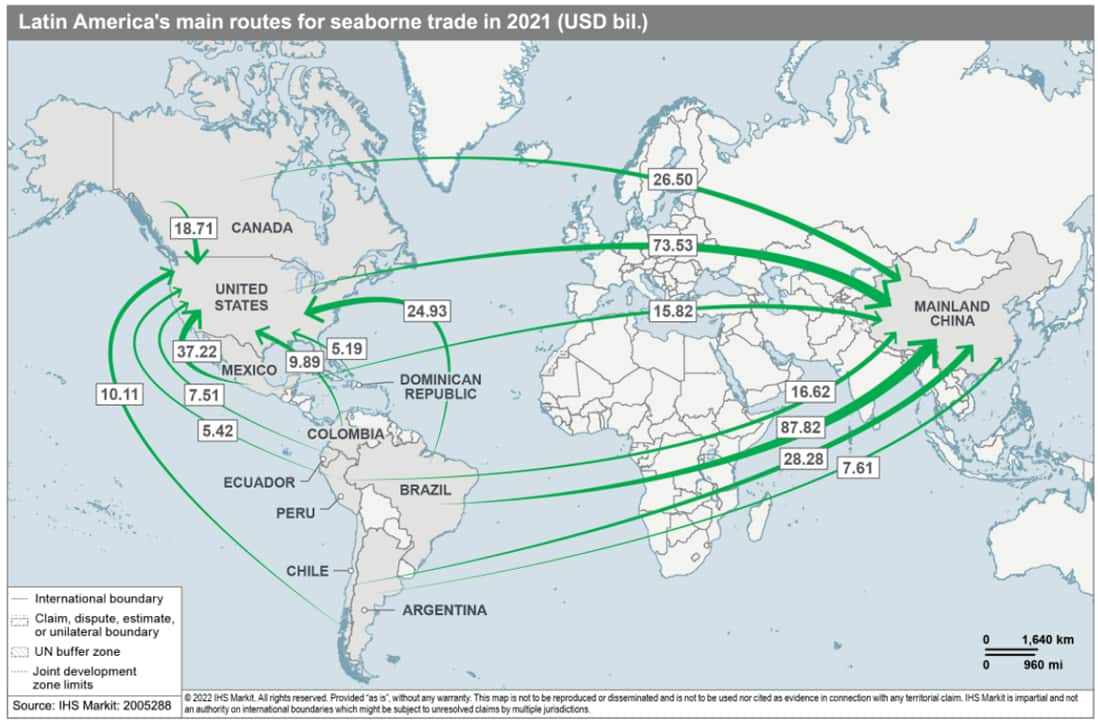 The main disruption for Latin American traders comes from increased shipping costs and long delays to products arriving at their destinations, considering that the US and China, which are significantly affected by bottlenecks at ports, are their main export markets. Exports to those countries have been delayed by up to sixfold, with goods that previously took weeks to arrive now taking more than six months, as calculated by industry sources. Export delays are likely to continue throughout 2022, as some Chinese ports remain closed because of COVID-19 and lorries and warehouses suffer from staff shortages in the US.
