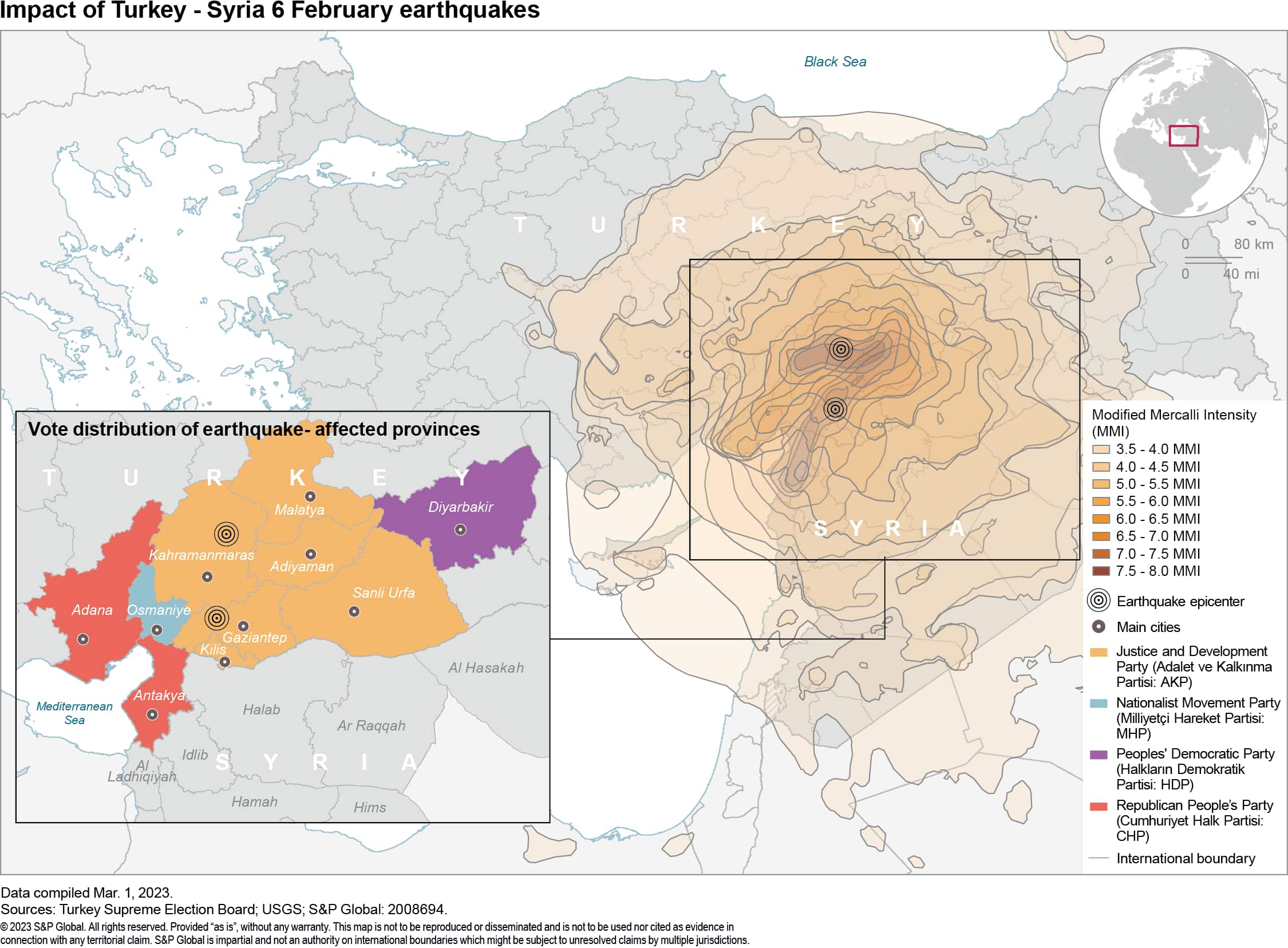 Turkey's elections are currently scheduled for May 14, 2023. The Supreme Election Board has the authority to delay elections if it rules that voting is not possible in earthquake hit zones - as it did in 1996 - which would be perceived by the opposition as a government-led decision amounting to a coup, likely triggering widespread protests.