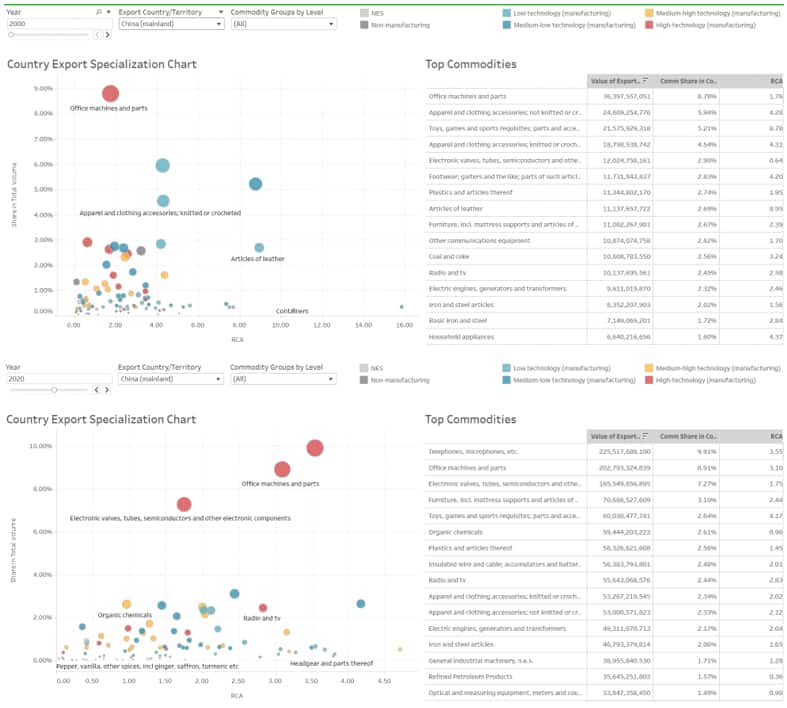 Case study - Changing pattern of export specialization of China (mainland) in 2000 & 2020