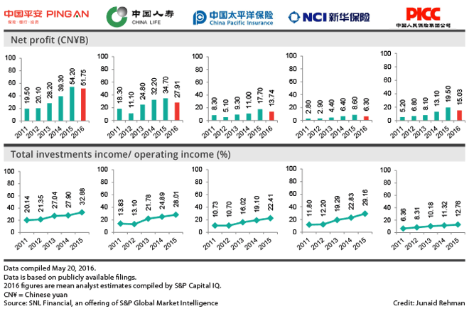Annual net profit will likely fall at all five companies in 2016 from the previous year, which would be their first decline in at least four years, according to mean analyst estimates compiled by S&P Capital IQ. In four years through 2015, earnings more than doubled at Ping An and China Pacific, while NCI and PICC saw more-than-threefold profit surges.